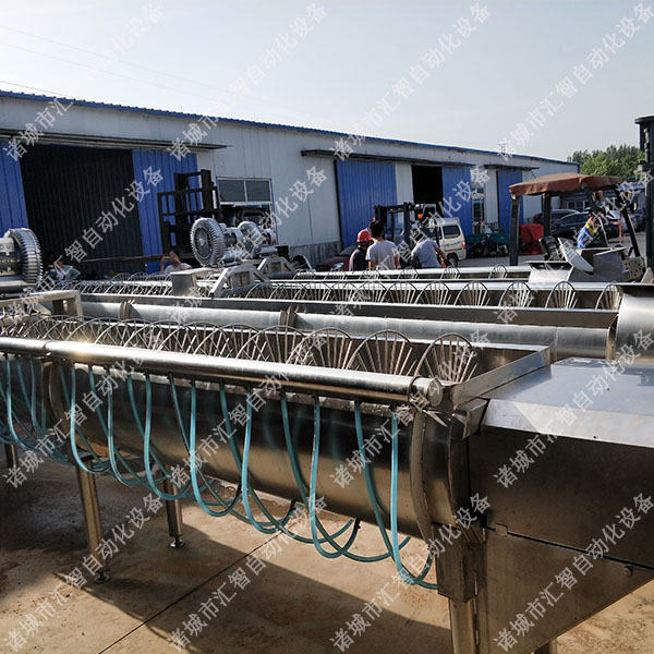 3、設(shè)立能夠充分清洗豬體的屠宰淋浴設(shè)備 應(yīng)在不同高度、不同方向設(shè)置噴頭,螺旋預(yù)冷機以利屠宰淋浴對豬體的清洗。水溫控制夏季以20℃,冬季以25℃為宜,屠宰淋浴時溫度不宜過高或過低,否則會給肉的質(zhì)量帶來不良影響,淋浴時間以能達(dá)到豬體表面污物洗凈為宜,不宜過長。