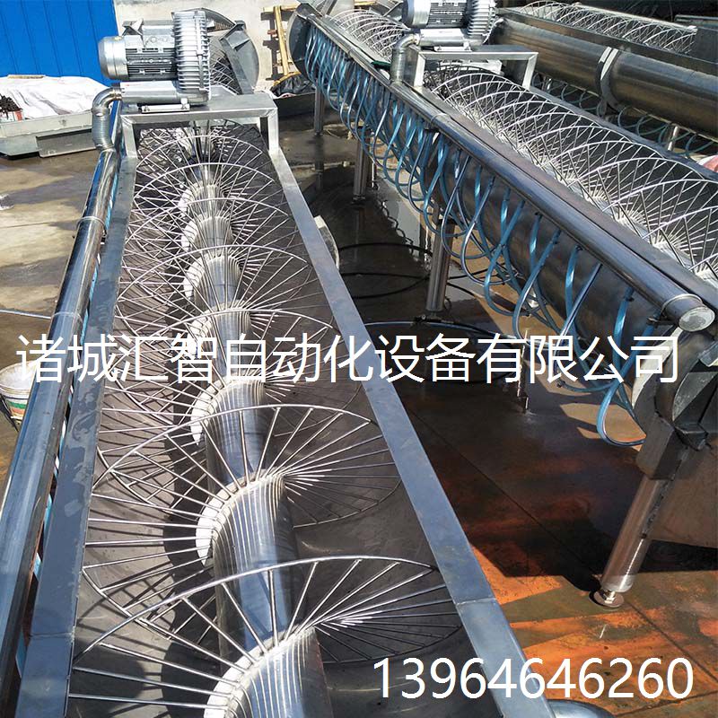 該設(shè)備主要用雞頭/雞爪的預(yù)冷工作,以達(dá)到脫酸排毒的目的,螺旋推進(jìn)系統(tǒng)及鼓風(fēng)系統(tǒng)使雞頭,雞爪的冷卻更加均勻,徹底,預(yù)冷時間可根據(jù)客戶要求設(shè)計制作。