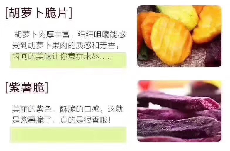 真空油炸機做出的薯條香脆但不油膩,它不僅保持了原蔬菜水果的色、香、味,而且還具有低熱量,低脂肪,高纖維,富含維生素和礦物質等特點,再加上保質期較長這一優勢,所以脆片逐漸成為了人們休閑食品的首選。